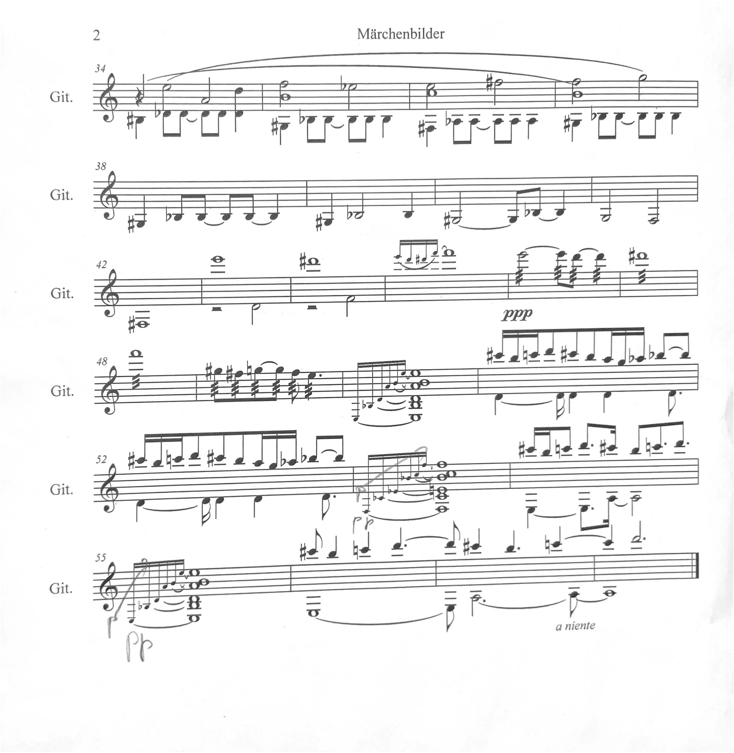 Die Stücke reichen von Werken für Solo-Gitarre bis hin zu größeren kammermusikalischen Besetzungen.